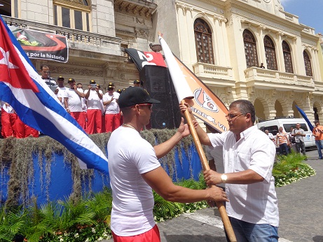 El estandarte que acompañará al conjunto naranja fue escoltado por Ramón Moré, Ariel Pestano y Ariel Borrero y recibido por Freddy Asiel Álvarez, Andy Sarduy, y Yosvel Zulueta así como por Vladimir Hernández, quien comanda a los azucareros.