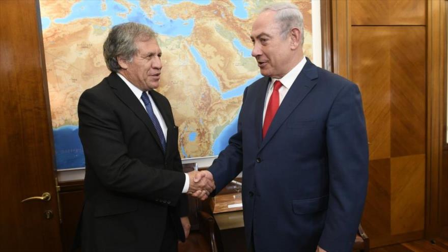En su desfachatez, el titular de la OEA pretende ignorar que Israel es un Estado creado artificialmente por la Asamblea General de Naciones Unidas mediante la usurpación de la mitad de Palestina, y que durante 70 años de guerras de rapiña, represión, terrorismo, masacres, asesinatos selectivos y limpieza étnica, ha extendido sus fronteras a casi la mayor parte de ese territorio, sembrando en él miles de ilegales asentamientos de colonos judíos.