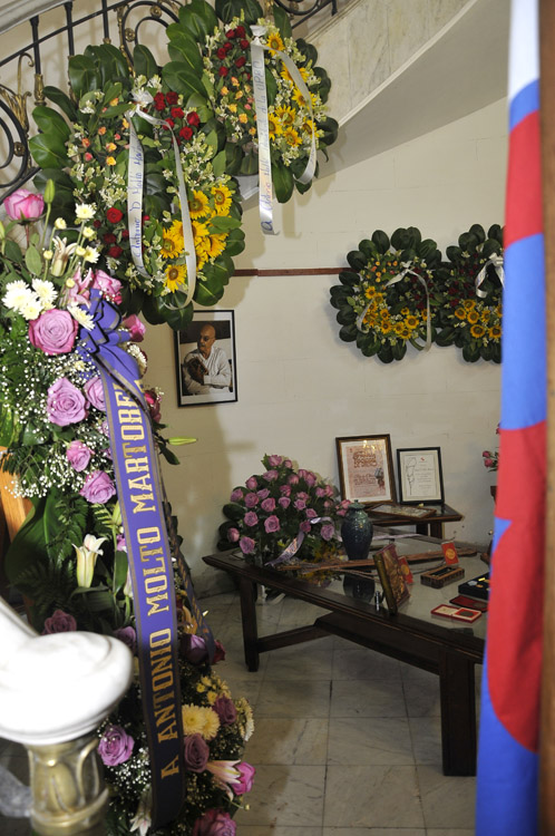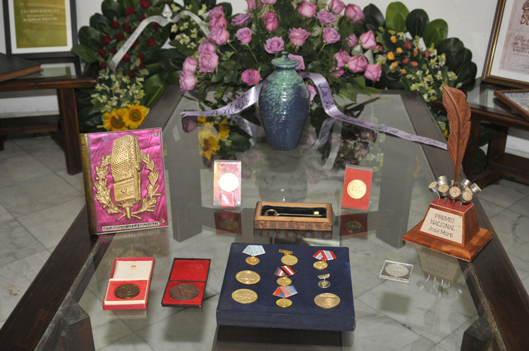 La Casa de la Prensa estuvo decorada por las ofrendas florales enviadas por el General de Ejército Raúl Castro, presidente de los Consejos de Estado y de Ministros, y de Esteban Lazo, presidente de la Asamblea Nacional del Poder Popular.
