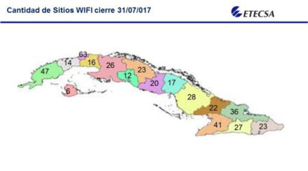 “Hasta diciembre del 2017 lo previsto era sumar unos 120 sitios, cifra que será superada con facilidad”, estimó Eliezer Samada Granda, del Grupo de Conectividad Wifi, de Etecsa. No es que el plan fuera conservador, razonó el especialista, esto obedece a la existencia de una alta motivación para ampliar el servicio, tanto en los gobiernos provinciales como en nuestra fuerza técnica, que le da prioridad por la rapidez del resultado.