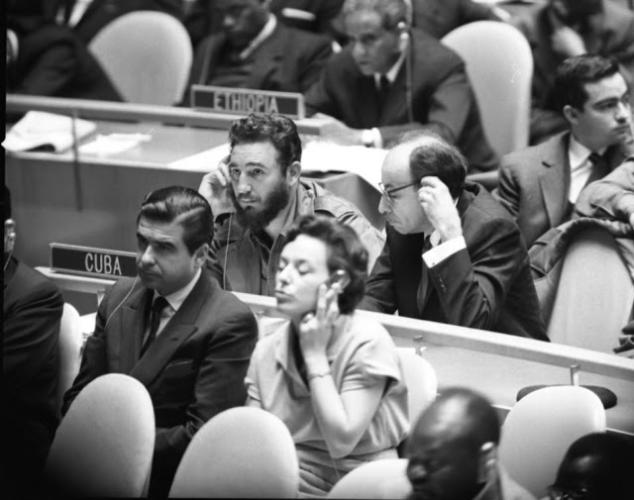 El 18 de septiembre de 1960 Fidel partió hacia Nueva York, con el objetivo de participar en el XV Asamblea General de las Naciones Unidas. La delegación cubana estaba integrada además por Raúl Roa, el Comandante Ramiro Valdés, Celia Sánchez, Emilio Aragonés, Juan Escalona y Antonio Núñez Jiménez. Dos días más tarde se incorporarían a la misma el Comandante Juan Almeida y el destacado intelectual Regino Boti.