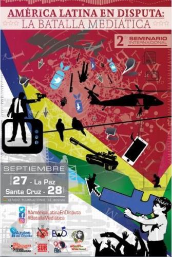 En las ciudades de La Paz y Santa Cruz de la Sierra, Bolivia, los días 27 y 28 de Septiembre del corriente año tuvo lugar un seminario internacional para discutir el tema objeto de la presente nota. El evento reunió a un conjunto de analistas bolivianos e internacionales y también a dirigentes y militantes de los movimientos sociales de ese país para analizar una de las armas más virulentas de la contraofensiva lanzada por el imperio: la batalla mediática. Contó con la presencia de intelectuales bolivianos como Emilio Rodas, Hugo Moldiz y Katu Arkonada, y Gisela López, Ministra de Comunicación del Estado Plurinacional de Bolivia, en representación del gobierno boliviano. A estos se sumaron Randy Alonso Falcón (Cubadebate), Luis Hernández Navarro (La Jornada, México y TeleSUR), Érika Ortega Sanoja (corresponsal de RT en Venezuela), Otavio Antunes (Fundación Perseu Abramo de Brasil), Carlos Antonio Lozada (prensa FARC, Colombia), Juan Manuel Karg (Red de Intelectuales y Artistas en Defensa de la Humanidad), Luis Bruschtein (Página/12), y el autor de esta nota.
