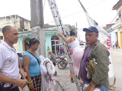 Trabajadores de todos los sectores están dando su aporte en la pintura de instituciones, en la limpieza de calles, repello de paredes, colocación de luminarias, entre ellas las del parque Leoncio Vidal donde se realizará la gala homenaje a la fecha y las de la Plaza que lleva el nombre de Guevara en la que se hará el tributo especial.