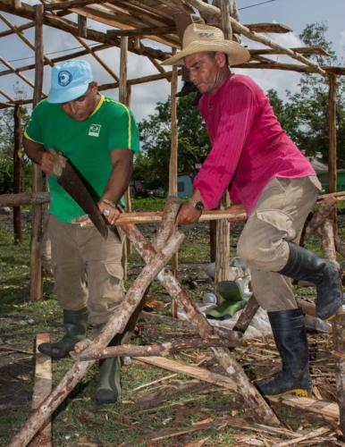 Tomás Sánchez Carmona, vicepresidente de la Cooperativa de Producción Agropecuaria Gregorio López viaja cada día desde el cercano poblado de Redención junto a una brigada “hombres-orquesta” que tienen la responsabilidad de construir varias de las viviendas. Por eso tienen argumentos de primera mano para hablar del asunto. “El petróleo que nos han dado ha sido poco, así como los ‘cortes’ de casa (la cantidad de madera necesaria para levantar cada inmueble). Hasta ahora hemos podido resolver porque nos vamos pa’l monte y nosotros mismos buscamos los palos que hacen falta”, asegura.