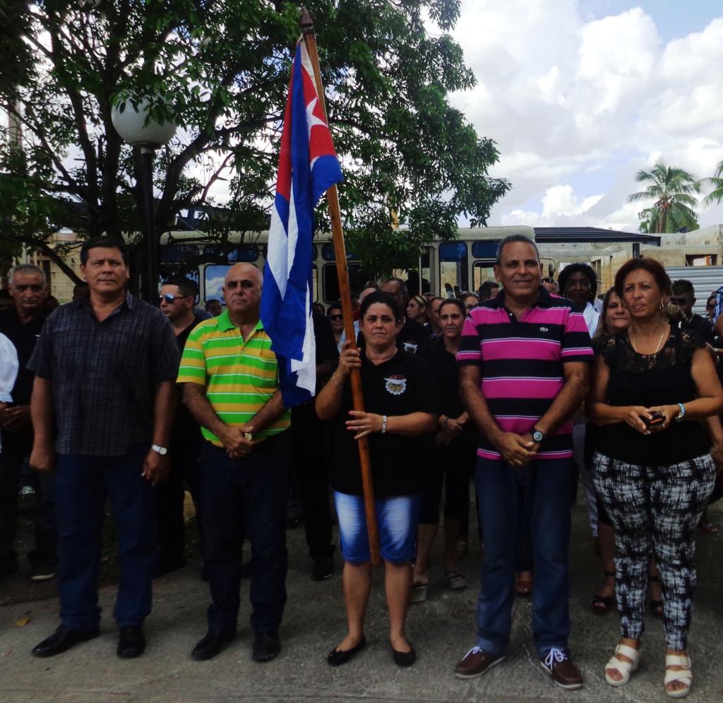 Yudith Fardales Díaz, secretaria del buró sindical que representa a los más de ocho mil afiliados de la central provincia, al recibir el estandarte, resaltó la contribución de los hombres y mujeres “de los cascos blancos” en las labores de higienización, desobstrucción de carreteras y caminos, rehabilitación de conductoras hidráulicas y en la producción de materiales para reparar o edificar las viviendas afectadas por el evento meteorológico.