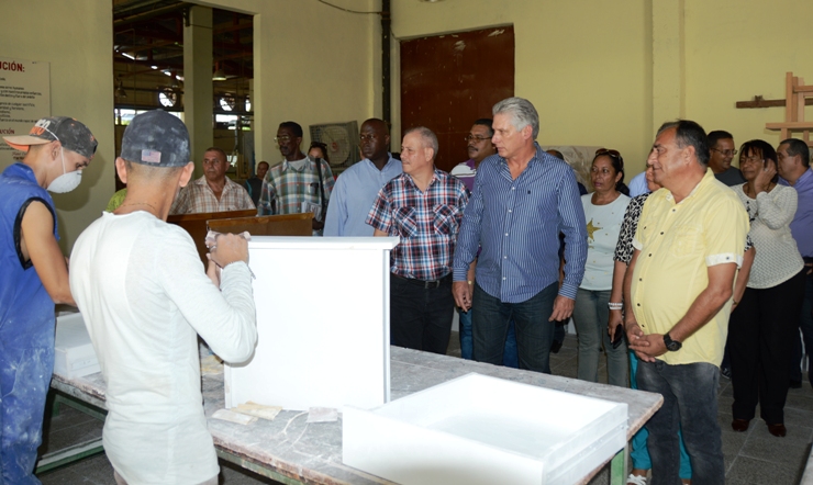 Díaz-Canel elogió además la capacitación que se realiza con los obreros a la par del proceso de introducción de nuevas tecnologías, así como la respuesta de la fábrica con la activación de brigadas especializadas para la recuperación de los muebles afectados en instalaciones turísticas del país.
