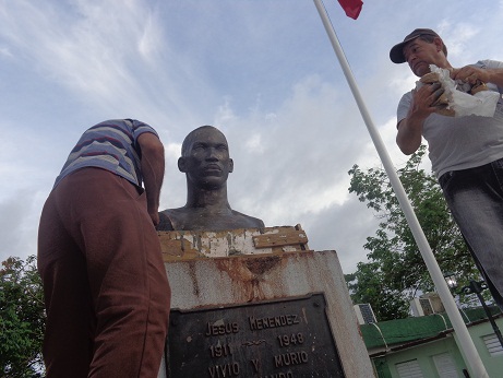 El busto de Jesús Menéndez, ubicado en un espacio del municipio de Encrucijada, tierra natal del líder azucarero, quedó totalmente restaurado tras haber sido dañado severamente por los embates del huracán Irma.