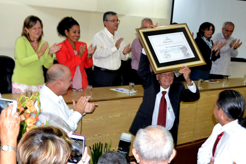 Al doctor Evelio Cabezas Cruz los años no han logrado apagarle el brillo de sus pequeños ojos cafés y ni las ganas de continuar sirviendo a los otros. Hoy recibió, junto a los también doctores Néstor Manuel Pérez Lache y Felix Alberto Campanioni Landi, el Premio al Mérito científico por la obra de toda la vida, y apenas pudo disimular la amplia sonrisa que escapó de su rostro al recibir tan alto homenaje, en el acto de premiación del concurso “Premio Anual de Salud”.