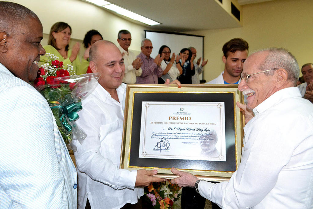 Al ministro de Salud, Roberto Morales Ojeda correspondió entregar los reconocimientos al Gran Premio y a los Premios al Mérito Científico por la obra de toda la vida. No faltó la sonrisa del dirigente ni una extensa ovación para esos que en esta importante fecha fueron protagonistas.
