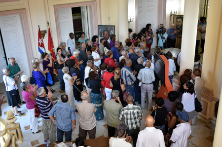 Una nutrida concurrencia se reunió en la sede del Instituto Cubano de Amistad con los Pueblos (ICAP), para saludar el aniversario número 100 de la Revolución de Octubre dirigida por Vladimir Ilich Lenin, en Rusia de 1917.