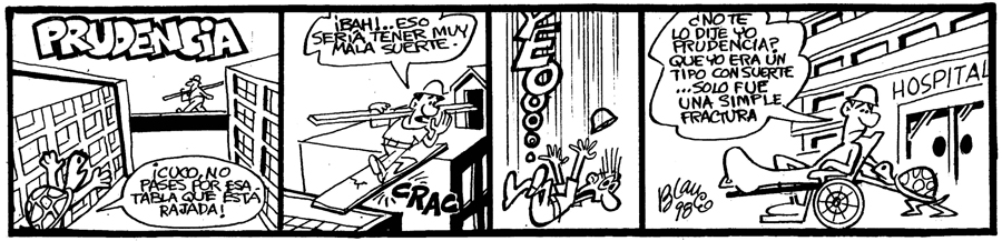 Sobre todo eso llamaba la atención Prudencia, la tortuga concebida por Blanquito, conciencia vigilante de la seguridad y salud en el trabajo. Y los resultados se veían muy claros cuando no se atendían sus advertencias.