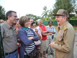 Al retirarse Raúl conversó con Omar Linares, una de las glorias del deporte cubano, quien igualmente ejerció su voto en ese colegio electoral.