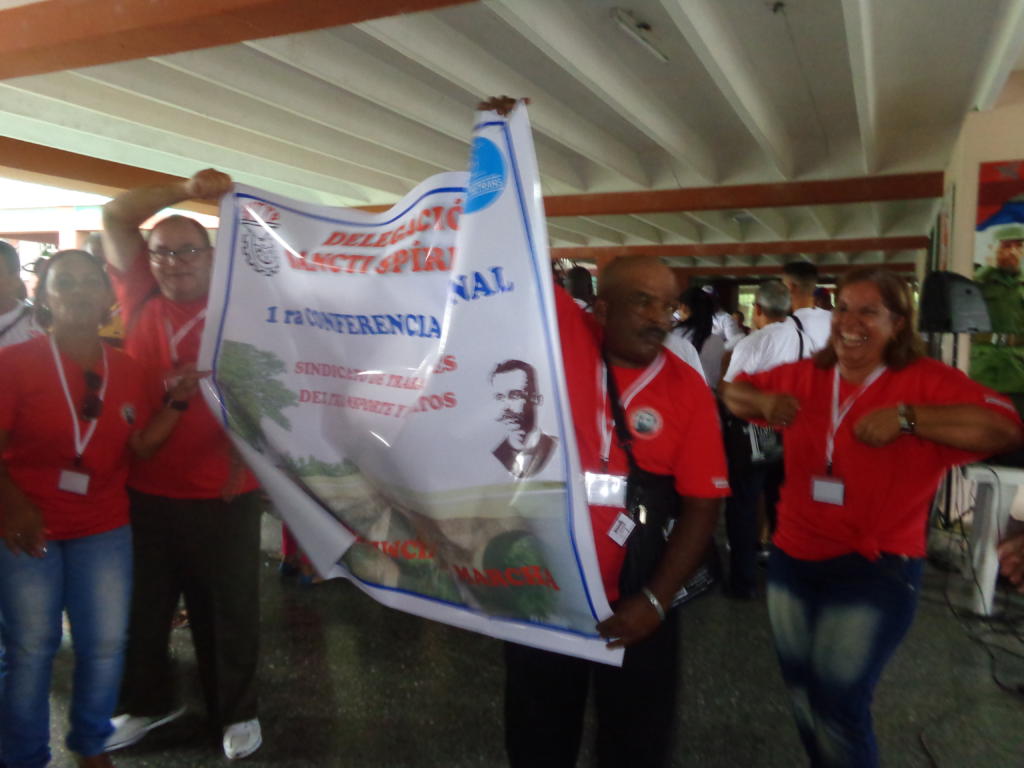 El entusiasmo prevaleció en el inicio de la 1ra Conferencia del Sindicato Nacional de Trabajadores del Transporte y Puertos. Foto: De la autora