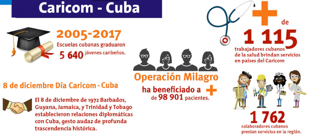 El 8 de diciembre tendrá lugar en Antigua y Barbuda la VI reunión de mandatarios de Cuba y los 14 países que integran el Caricom. El evento servirá para perfeccionar los mecanismos de cooperación sobre los cuales se asientan las relaciones del bloque regional con la Mayor de las Antillas, así como festejar los 45 años de aquel audaz gesto de los primeros ministros de Barbados, Trinidad y Tobago, Guyana, y Jamaica, quienes restablecieron los vínculos diplomáticos con Cuba y reconstruyeron los lazos de amistad que históricamente han caracterizado a los pueblos de estos pequeños Estados insulares que comparten mucho más que el mar Caribe.