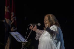 Honda conmoción se vivió en el teatro Heredia cuando se dejaron escuchar los acordes de Laureles y olivos, por Raúl Torres, y muy particularmente El regreso del amigo y Cabalgando con Fidel, en las voces Raúl Torres Eduardo Sosa y Annie Garcés.