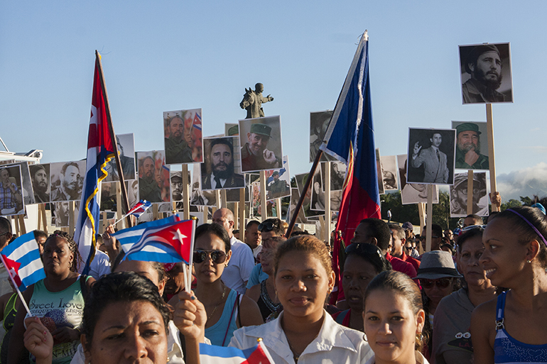 Estudiantes de diferentes niveles de enseñanzas, obreros, intelectuales, miembros de las Fuerzas Armadas Revolucionarias y el Ministerio del Interior, campesinos, jubilados y muchos más portaron banderas cubanas y del 26 de Julio, pancartas con imágenes del Comandante en Jefe y con frases que una y otra vez retumbaron contundentes: Fidel entre nosotros, Yo soy Fidel, Hasta la victoria, siempre.