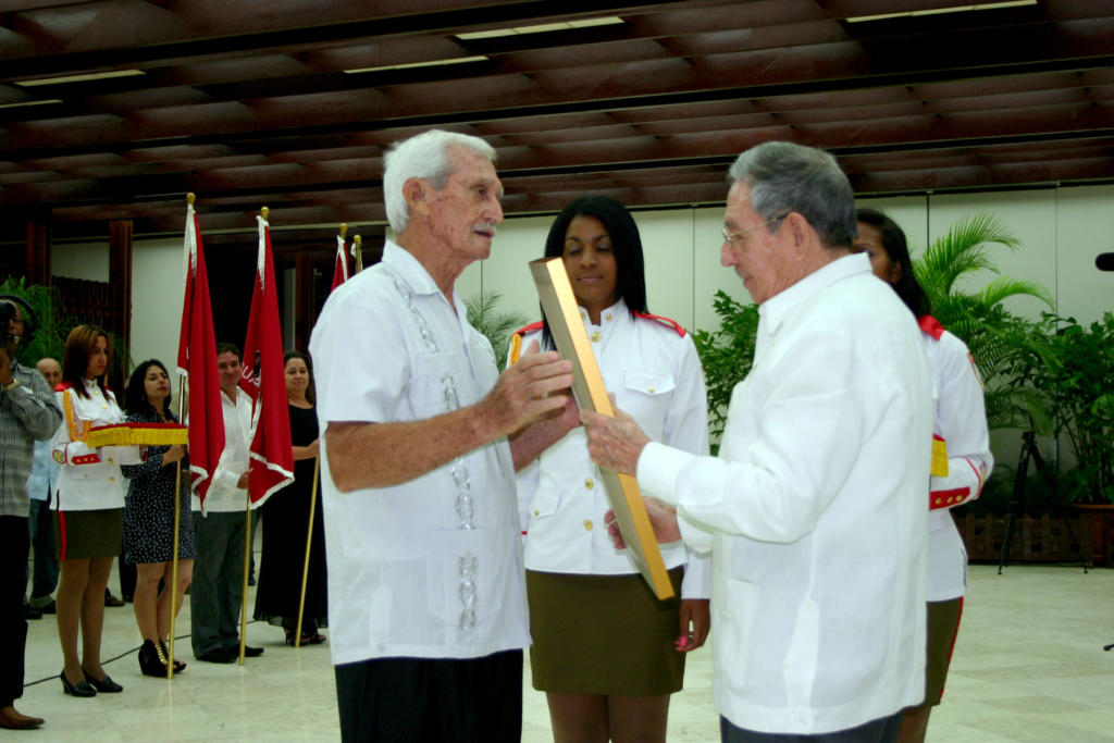 “Ese fue un momento muy difícil para mí. Yo estaba muy tenso y, no sé por qué, pero fue Raúl quien me impuso la Estrella de Héroe. Me dijo que aún me mantenía fuerte. Y casi no pude responderle, pues no me salían las palabras. Claro, me parece que en esas circunstancias no se puede hablar mucho. Mire usted, estaba tan nervioso que más de una hora después ni hambre tenía, a pesar de lo vistosa de la mesa sueca que allí había”, dice sonriente.