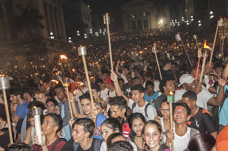 Como cada año, este 27 de enero se iluminó el camino que conduce, desde la escalinata de la Universidad de La Habana, hasta la Fragua Martiana. Miles de estudiante de las enseñanzas media y superior, encabezados por el General de Ejército Raúl Castro Ruz, Presidente de los Consejos de Estado y de Ministros, se dieron cita para continuar dando vida a una tradición que ha marcado la historia de Cuba.