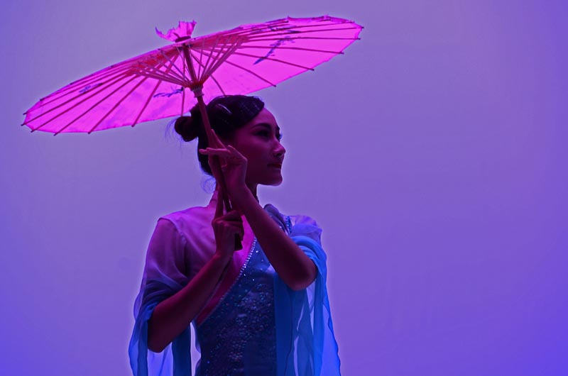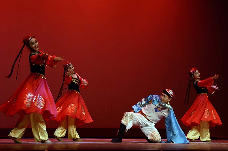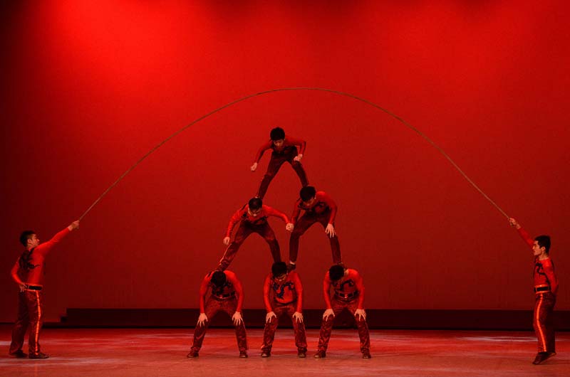 En la escena se combinaron música, vistosas coreografías y actos de acrobacia en una demostración de la cultura tradicional y la riqueza folclórica del gigante asiático.