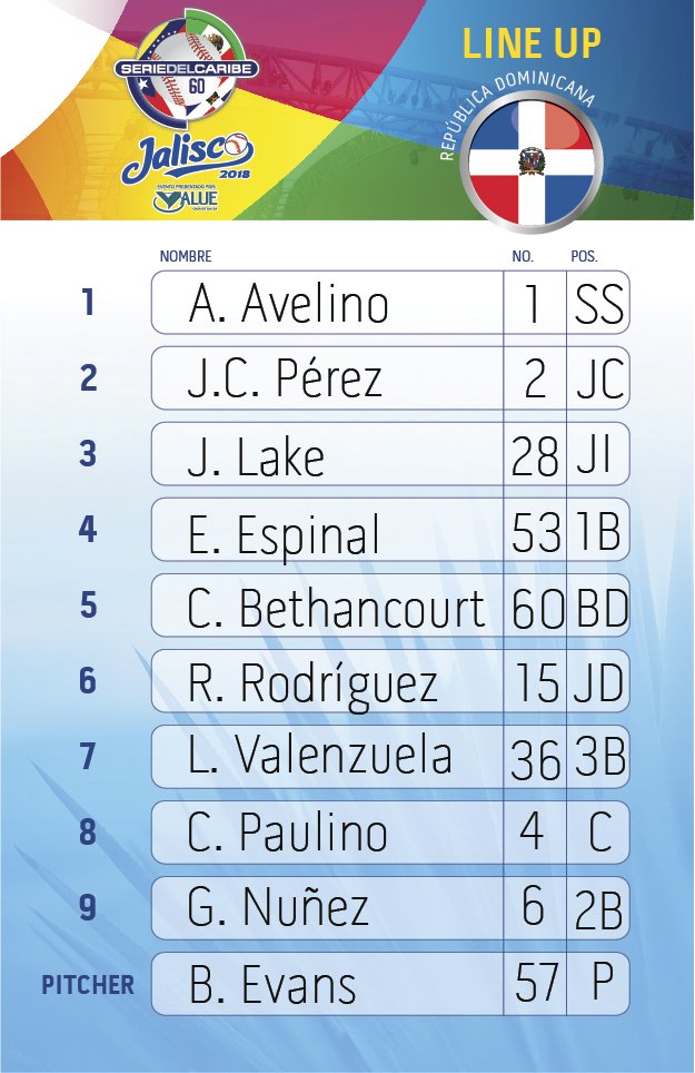 Joel desde la sede: El derecho Bryan Evans, con diez años de experiencia en triple y doble A es la designación de Dominicana para un partido en el que está en juego la clasificación de México, pues de ganar los quisqueyanos habrán eliminados a los locales. Los tres primeros en la tanda cubana apenas le consumieron 10 lanzamientos al hombre que por vez primera enfrenta a Cuba en Series del Caribe.