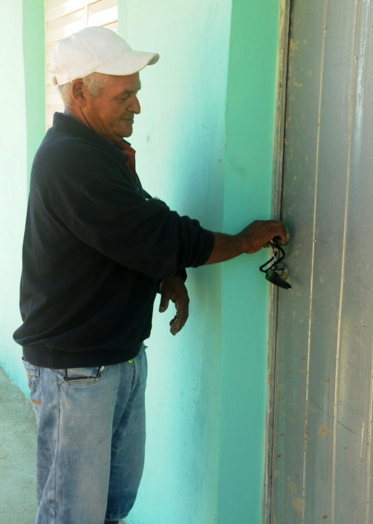 Nervioso, Arnaldo abre la puerta de su nueva vivienda. Fotos: Orlando Durán Hernández