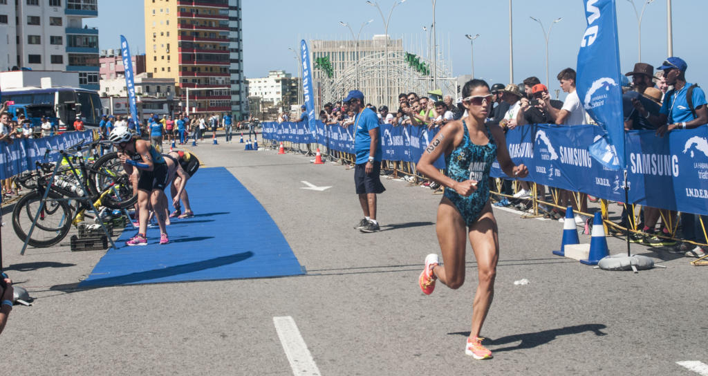 Para el tramo de la carrera ya se anunciaba por los altavoces una grata noticia para Cuba. Leslie Amat figuraba entre las primeras competidoras. Desde el borde de los jardines del Hotel Nacional, a falta de solo dos vueltas, estaba sola en la segunda posición. Ni la humedad, ni el sol, ni los tironazos que le propinó una de sus contrincantes en la prueba de natación le impidieron alzarse con el subtítulo al detener los relojes en 2:06:44, a 37 segundos del primer lugar, la alemana Anabel Knoll.
