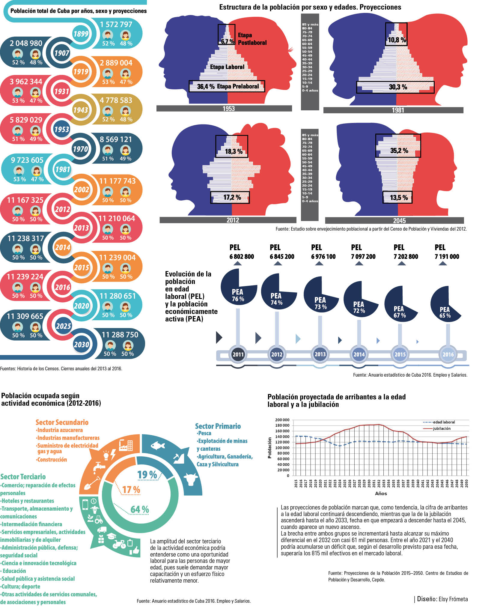 Por su connotación socioeconómica, diversos analistas han coincidido en que el envejecimiento poblacional, y en consecuencia, el envejecimiento de la fuerza laboral, es uno de los principales retos del país para sostener su desarrollo. Teniendo en cuenta esa realidad, Trabajadores utilizó algunas de las herramientas que ofrece el Periodismo de Datos para aproximarnos al tema. La información colectada se encuentra disponible en www.trabajadores.cu y fue confeccionada con datos de la Onei y el Ministerio de Trabajo y Seguridad Social.