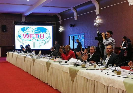 Es la segunda ocasión, después del 17 Congreso de la FSM que se reúne su Comisión Presidencial, resulta estimulante para la Delegación de Cuba, que este año se realice en la República de Irán, para ratificarle nuestra solidaridad militante y confianza en la capacidad de resistencia del pueblo y los trabajadores iraníes de superar las largas sanciones económicas promovidas por la política hostil y las campañas mediáticas de Washington, para aislar a Irán y obstaculizar su normal desarrollo económico y social.