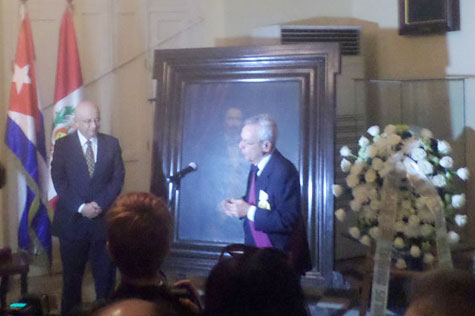 Durante la ceremonia de entrega, efectuada en el Palacio de los Capitanes Generales, el embajador peruano en Cuba, Guido Toro, invocó el ideario del Apóstol cubano, José Martí, y del escritor y pensador político peruano José Carlos Mariátegui.