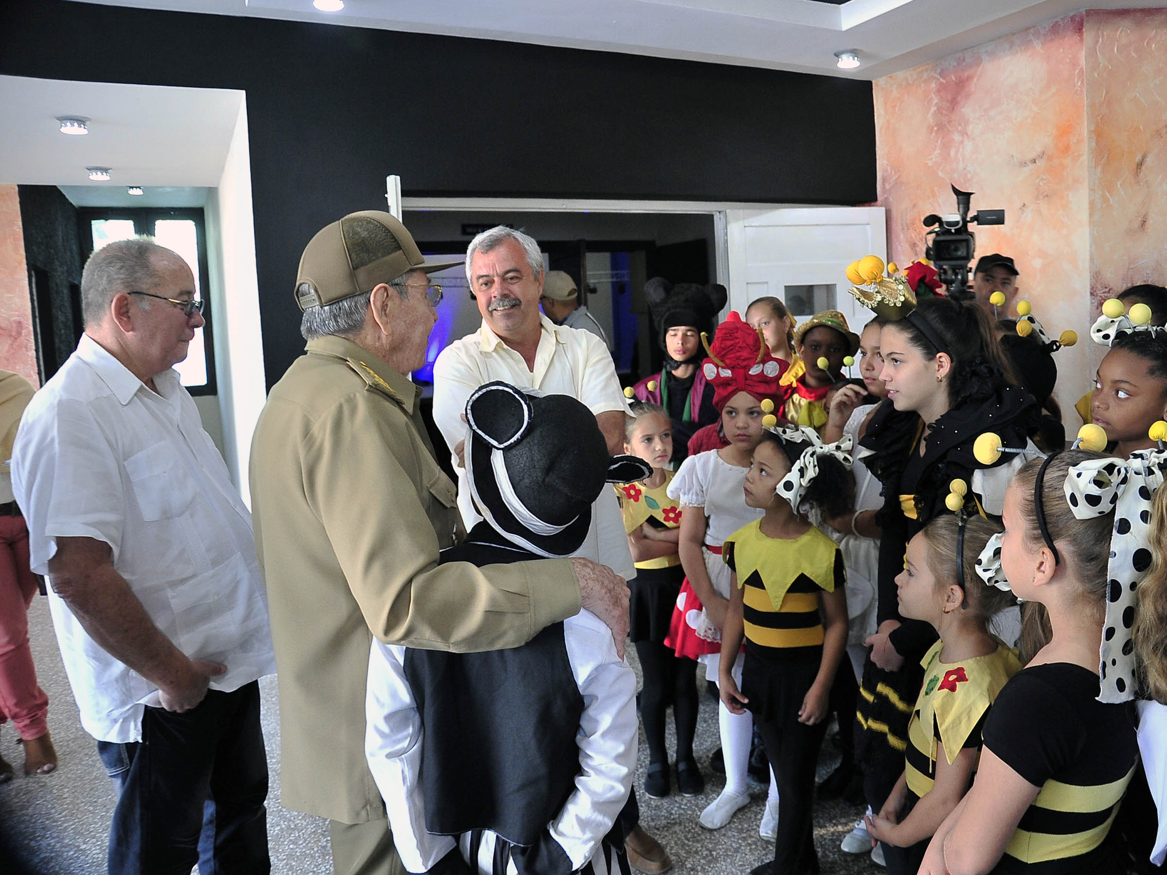 A Raúl se le veía feliz entre los niños del Segundo Frente, a algunos los cargó, a otros los embulló para que fueran a bailar al escenario, hubo quien tuvo el privilegio, incluso, de lucir su gorra de cuatro estrellas. Se tomó fotos con todo el que lo quiso, aunque no salió a bailar con ellos porque, según confió, Vilma intentó enseñarle pero no lo logró.