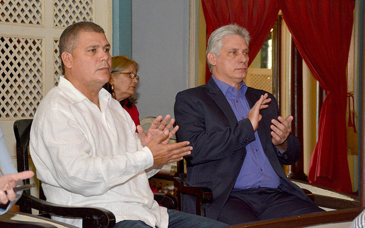 El miembro del Buró Político Miguel Díaz-Canel Bermúdez, primer vicepresidente de los consejos de Estado y de Ministro y otros diputados participaron en la sesión constitutiva de la Asamblea, efectuada en el Teatro La Caridad, Monumento Nacional.