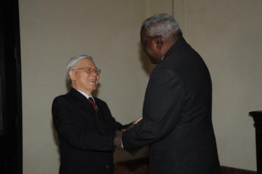 El presidente del parlamento de Cuba, Esteban Lazo, recibió este jueves al secretario general del Partido Comunista de Vietnam (PCV), Nguyen Phu Trong, a quien reiteró el deseo del país caribeño de estrechar relaciones.