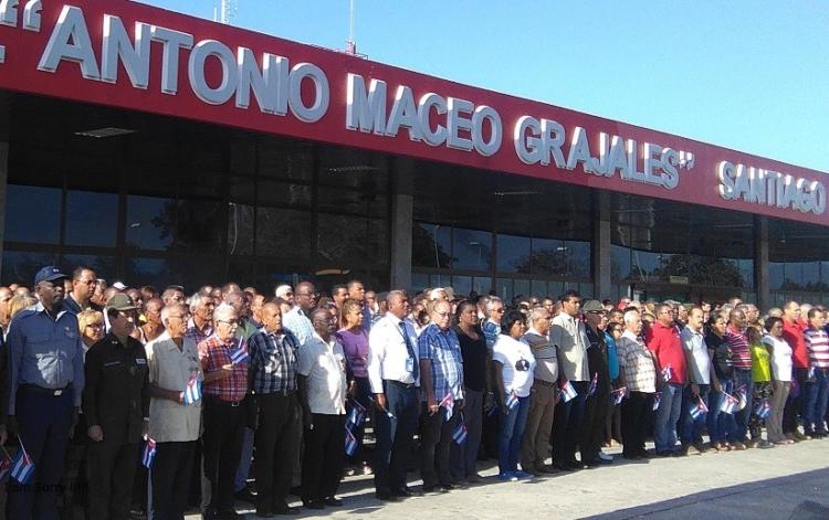 El aeropuerto internacional Antonio Maceo acogió a combatientes de Girón, trabajadores de la instalación, y una representación del pueblo santiaguero, encabezados por el Héroe del Trabajo de la República de Cuba y Primer Secretario del Partido en la provincia, Lázaro Expósito Canto, así como Beatriz Johnson Urrutia, presidenta de la Asamblea provincial del Poder Popular, ambos miembros del Comité Central.