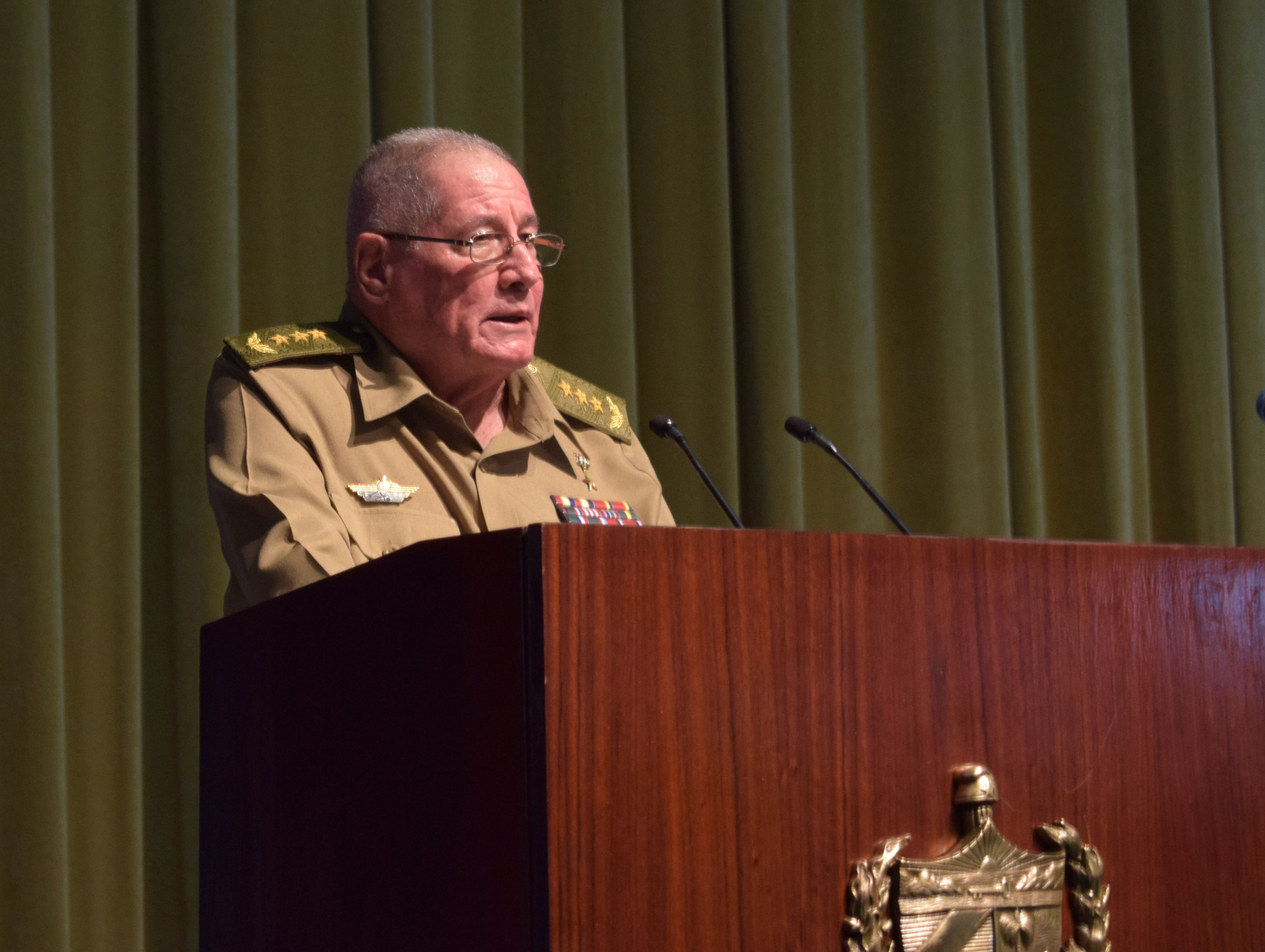 El acto —que tuvo lugar en la Sala Universal de las FAR, estuvo presidido también por el miembro del Buró Político y Primer vicepresidente de los Consejos de Estado y de Ministros, Salvador Valdés Mesa, así como por Nangolo Mbumba, vicepresidente de Namibia.