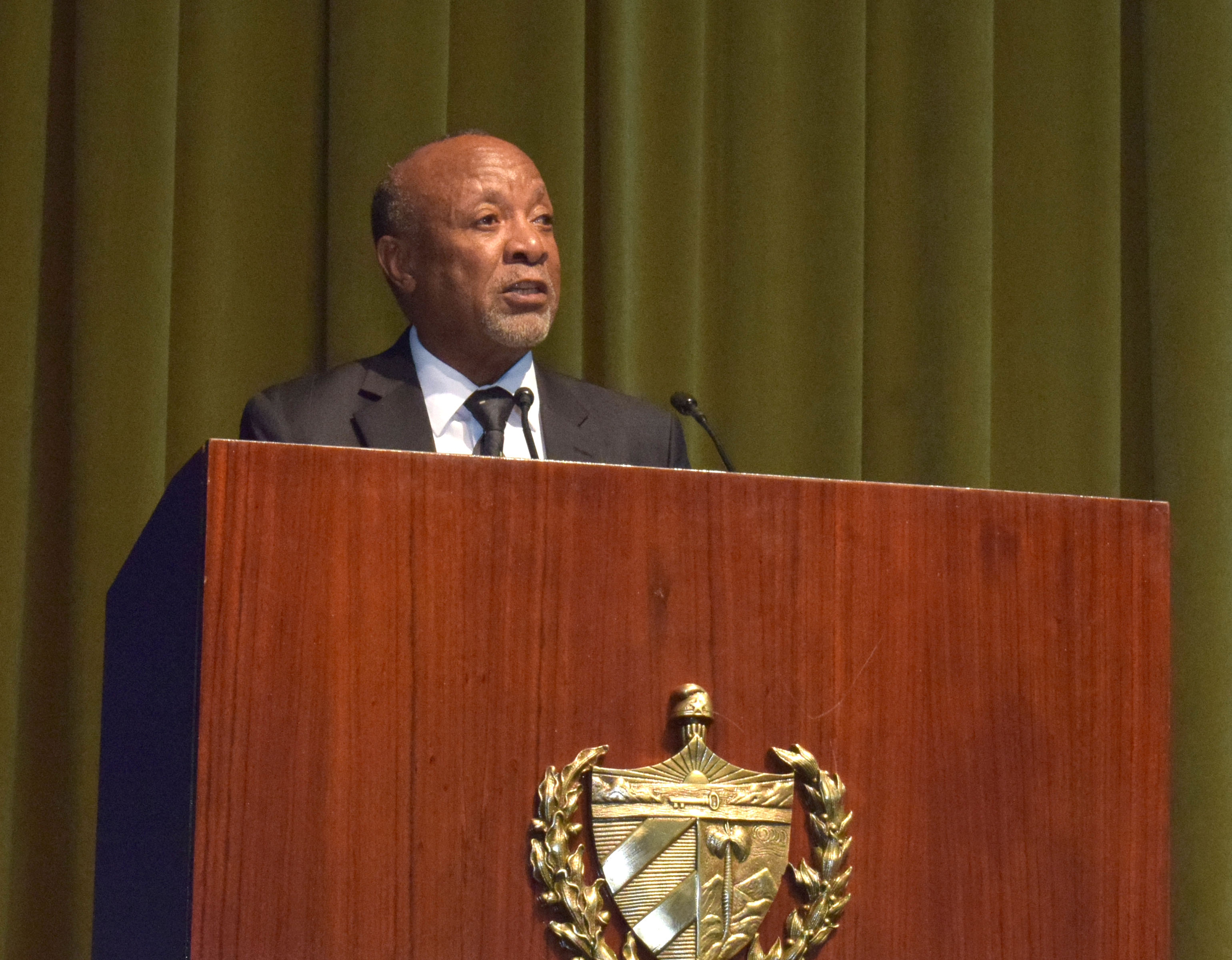 El vicepresidente de Namibia —acompañado en la ocasión por una delegación de su país— abogó por la eliminación del bloqueo de los Estados Unidos contra Cuba y la devolución de la base naval de Guantánamo.