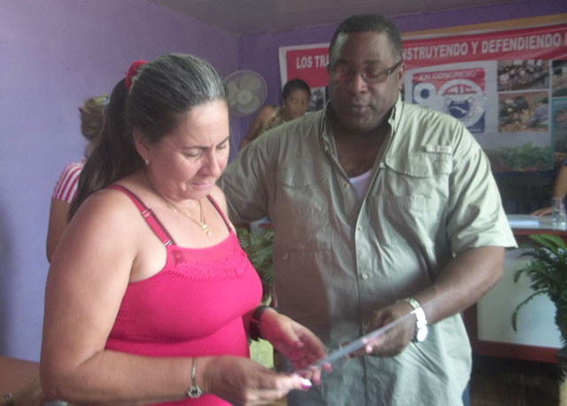 Un reconocimiento especial recibió Olga Lidia Mariño Valdivia, máxima representante de los afiliados al Sindicato de Trabajadores Civiles de la Defensa, por ser esta organización la primera de la provincia que cumplió el compromiso financiero como parte del movimiento Mi aporte a la Patria.