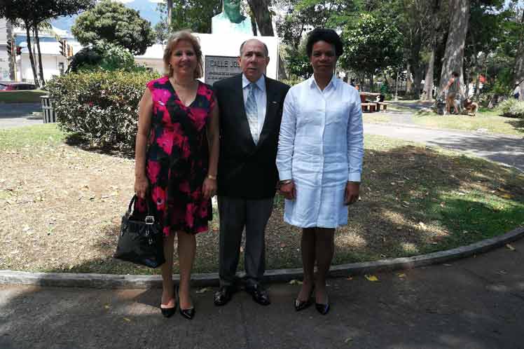 En el homenaje a Martí en el josefino Parque Nacional, Chapman estuvo acompañada por el coordinador de Centromérica, México y el Caribe de la cancillería tica, Miguel Obregón, la viceministra cubana de Relaciones Exteriores, Ana Teresita González, y el embajador cubano en este país.