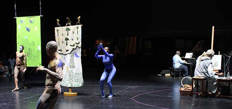 Pero Mendive, uno de los principales exponentes de las artes visuales de la mayor de las Antillas, tomó anoche la idea central de esas piezas y la trasladó al interior del teatro Eisenhower, donde creó una nueva pintura envuelta en esa misma intención de mirar a las esencias.
