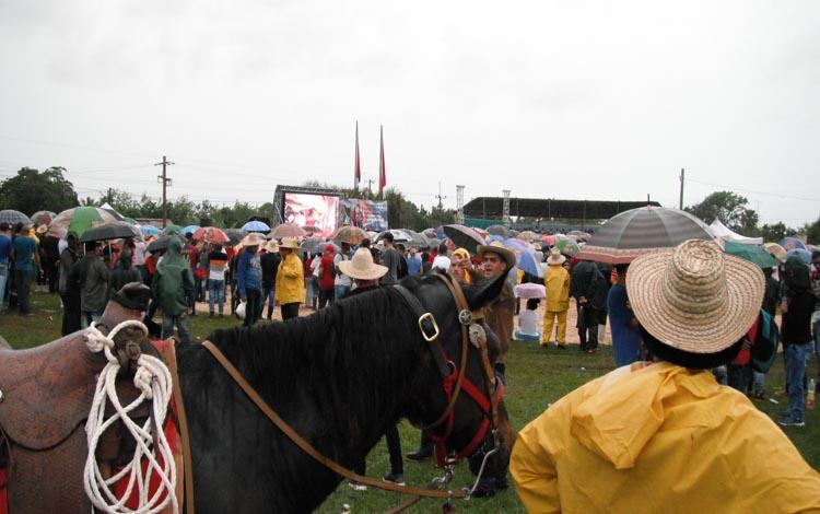 La unidad y el compromiso de los campesinos con la Revolución fue ratificado al amanecer de este 17 de mayo, cuando miles de mujeres y hombres de la campiña bajo la lluvia, se dieron cita en el estadio del poblado de El Gabriel, en Güira de Melena para celebrar el Día del Campesino y el aniversario 57 de la creación de la Asociación Nacional de Agricultores Pequeños.
