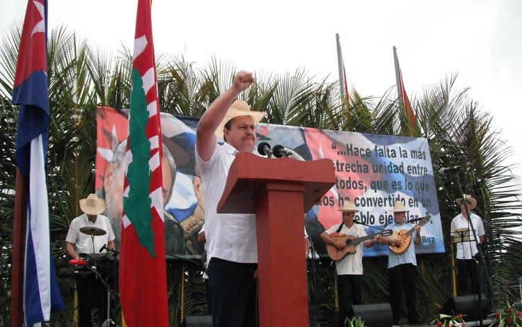 En las palabras centrales del acto, que se realizó bajo la insistente lluvia, Rafael Santiesteban destacó el significado histórico de los acontecimientos que se produjeron el 17 de mayo de 1959, sobre todo la promulgación de la Primera Ley de Reforma Agraria, que se hizo coincidir con el aniversario del asesinato del líder campesino Niceto Pérez, en la zona de El Vínculo, en Guantánamo.