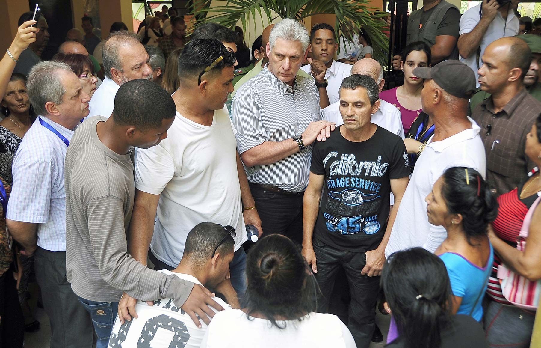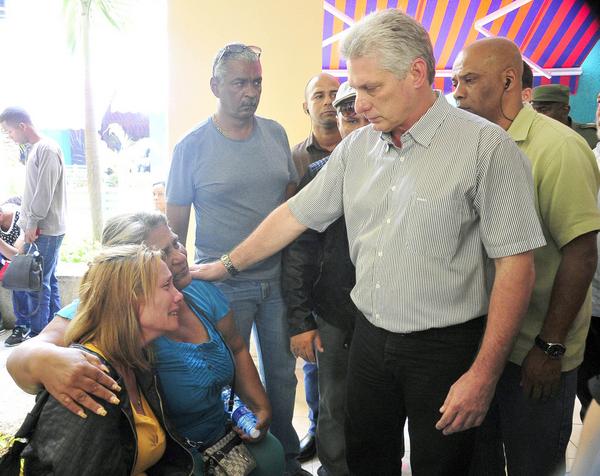 Acompañado por Mercedes López Acea, miembro del Buró Político del Comité Central del Partido Comunista de Cuba y primera secretaria en la capital, el jefe de Estado llegó hasta este sitio donde los familiares de las víctimas han acudido a brindar información que permita una rápida identificación de los cuerpos.