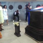 Del mismo modo acudió a rendir tributo ante los sepulcros de Carlos Manuel de Céspedes, Padre de la patria, y de Mariana Grajales Cuello, Madre de la patria.