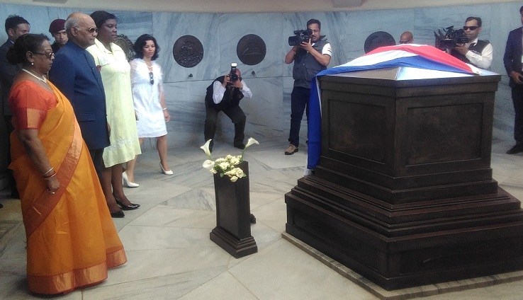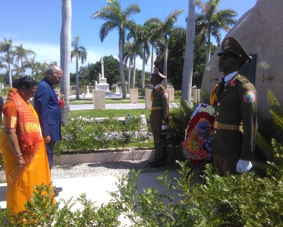 La primera actividad de Ram Nath Kovind fue el homenaje a José Martí, Héroe Nacional, y Fidel Castro Ruz, Líder Histórico de la Revolución cubana, en el cementerio de Santa Ifigenia de la Ciudad Héroe.