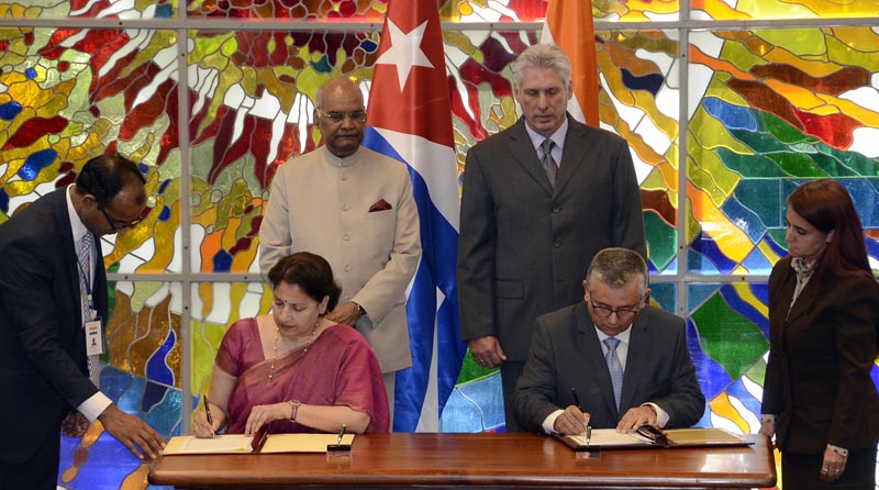 El Presidente de los Consejos de Estado y de Ministros, Miguel Díaz-Canel Bermúdez, recibió en la mañana de este viernes al Presidente de la República de la India, excelentísimo señor Ram Nath Kovind, quien realiza una visita oficial a nuestro país.