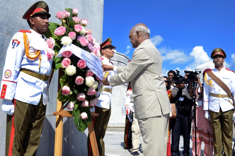 El presidente de la India, Ram Nath Kovind, rindió honores esta capital al Héroe Nacional José Martí, en su primera visita oficial a Cuba que comenzó ayer jueves en Santiago de Cuba con el homenaje al líder de la Revolución, Fidel Castro Ruz.