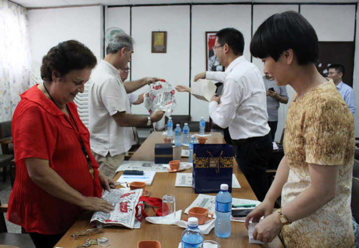 La subdirectora editorial Alina Martínez se refirió al tratamiento preferencial de la historia en el periódico, incluida la de las figuras más destacadas del movimiento sindical cubano. Le preguntó igualmente a Chen Songqing acerca de las características del sitio web y este le respondió que tanto la versión impresa del periódico como la digital son atendidas por el mismo colectivo de periodistas y ello constituye un reto por la dinámica que reclama la segunda.
