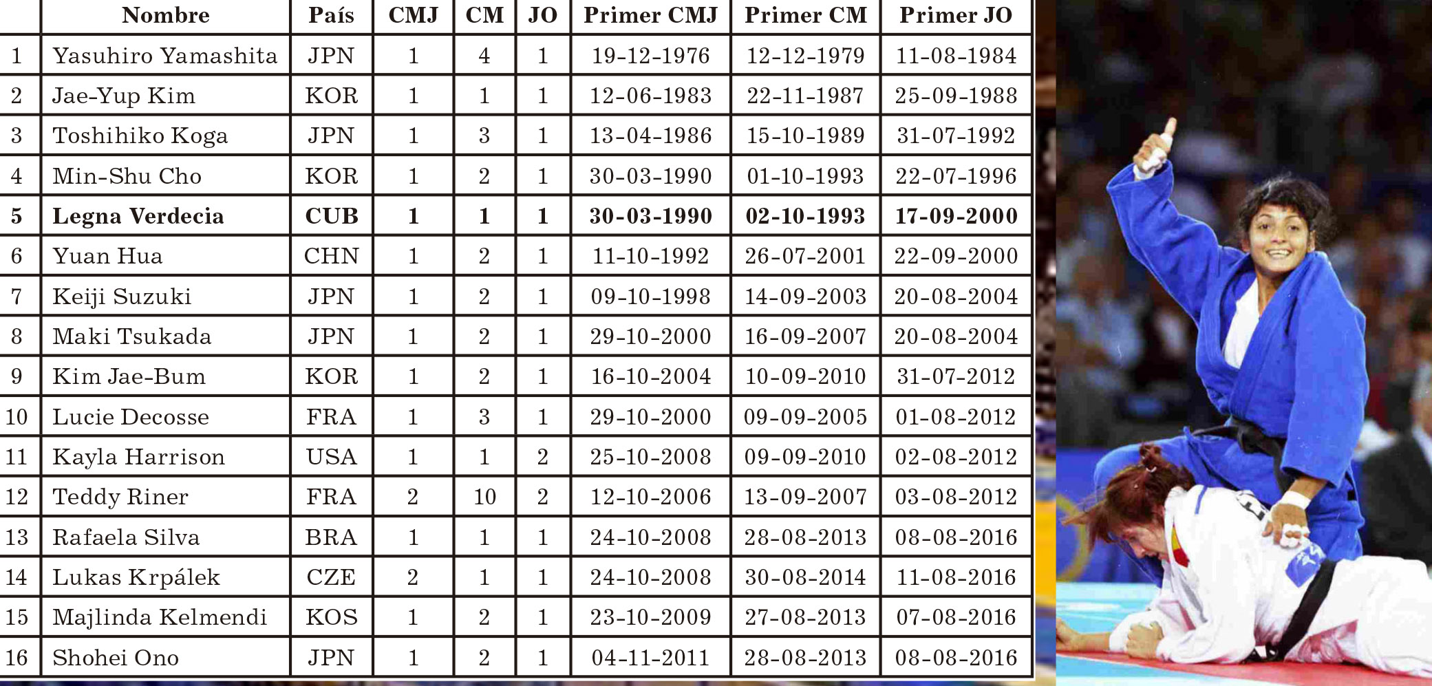Esta semana, a poco más de dos meses del Campeonato Mundial de Judo en Bakú, la Federación Internacional de la disciplina divulgó una información que tituló: Del talento mundial a la medalla olímpica, en la que se recogían los únicos 16 nombres que han podido ganar la triple corona, es decir, ser campeón mundial juvenil, luego de mayores, y finalmente de los Juegos Olímpicos.