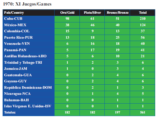 Panamá organizó en 1970 (28 de febrero al 13 de marzo) la oncena edición de los Juegos Centroamericanos y del Caribe —antes había sido sede en 1938—, hasta ese momento la más concurrida con una veintena de países y 2096 deportistas, quienes demostraron con sus desempeños que estas citas habían arribado a su mayoría de edad.