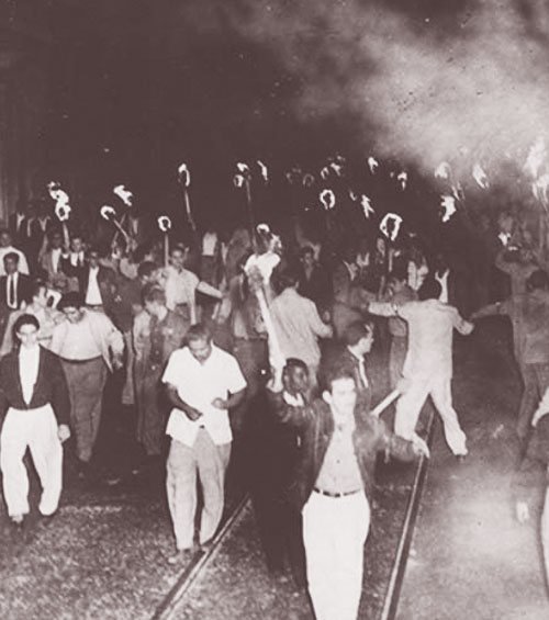 El 27 de enero de 1953, a las 11 y 30 de la noche, partió de la escalinata de la Universidad de La Habana hasta llegar a la Fragua Martiana la histórica Marcha de las Antorchas para esperar el 28, día en que se cumplían los 100 años del natalicio de José Martí. Dentro de los manifestantes se destacó un grupo cuyas antorchas se distinguían porque los palos que las sostenían estaban cruzados de clavos como una fórmula defensiva ante un posible ataque de la policía. Eran 300 hombres seleccionados entre los compañeros de Fidel, cuya perfecta organización, en medio de la multitud, llamó la atención de los transeúntes, algunos de los cuales comentaron que ellos eran los comunistas. Por la tarde volvieron a marchar tomados de los brazos y con disciplina ejemplar desde la escalinata al Parque Central gritando a una sola voz “¡Revolución! ¡Revolución!”.