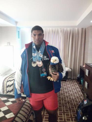 Juan Columbié (105kg) levantó dos platas en el arranque y envión. Primero alcanzó los 173kg y luego 200kg. Ambas pruebas fueron dominadas por el local Jesús González con 174kg y 210kg respectivamente.